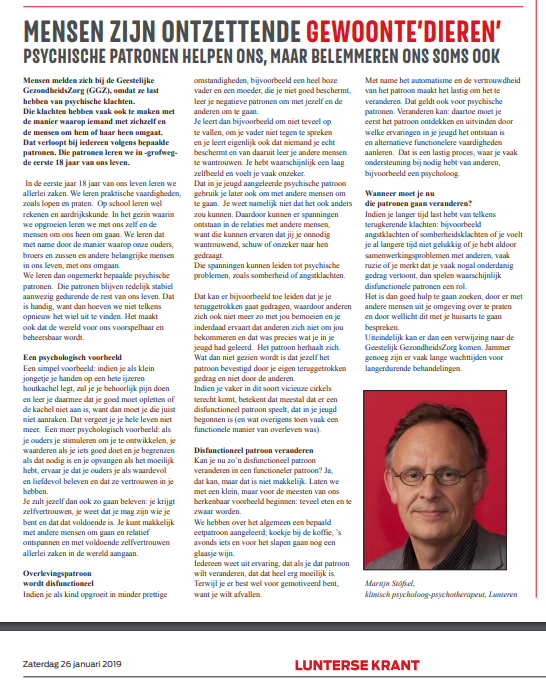 - ''Mensen zijn ontzettende 'gewoontedieren'': artikel in Lunterse Krant, januari 2019